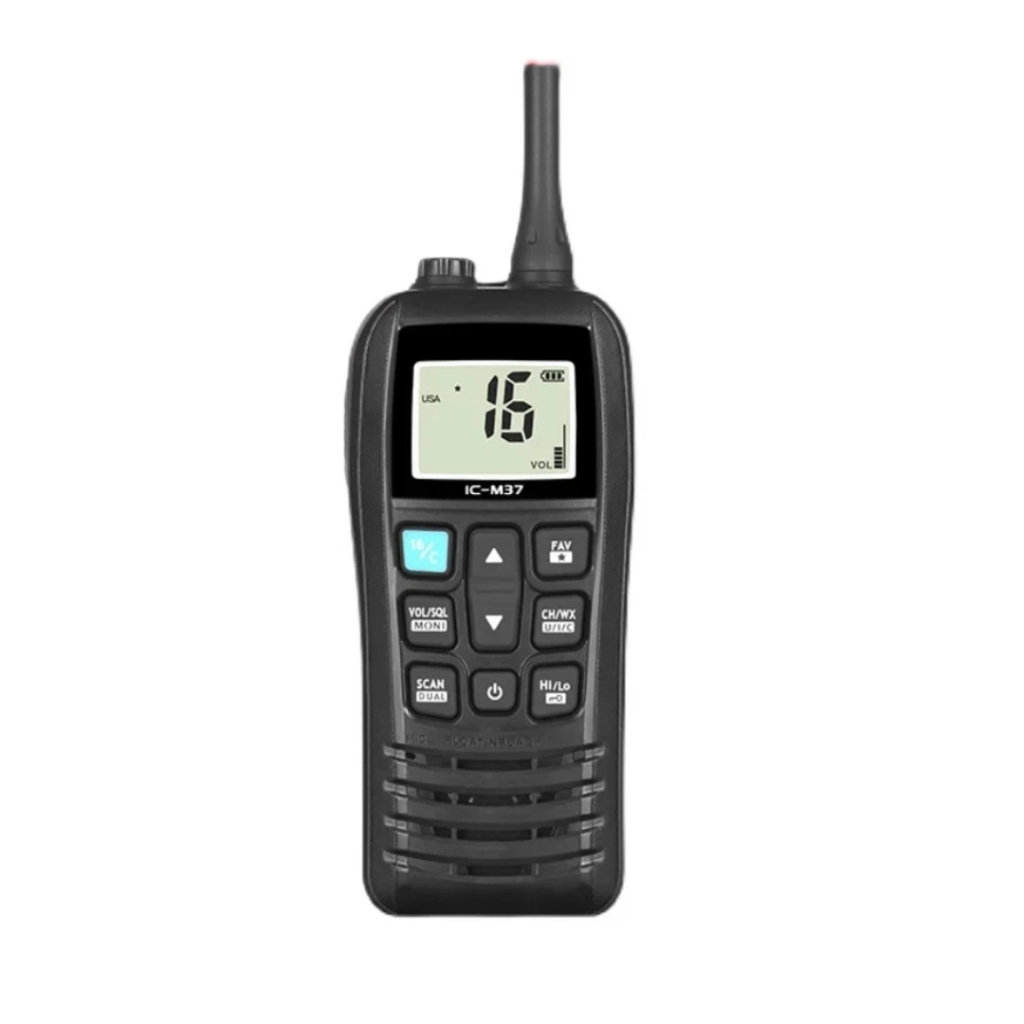 El IC-M37 tiene un diseño delgado y botones grandes, lo que facilita su manejo incluso con guantes durante la pesca o la navegación. Esto permite responder rápidamente a las llamadas. Además, el IC-M37 proporciona acceso instantáneo al canal 16, así como al canal de llamadas.